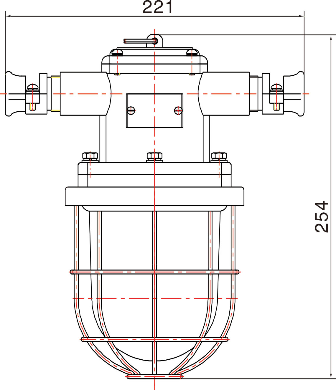 13W熒光燈由上蓋、上殼體、下殼體、防爆透明玻璃罩、金屬保護網等組成,上蓋與上殼體用M4螺釘連接,下殼體用M6螺釘與上殼體相連。防爆透明玻璃罩、護罩用M4螺釘固定在下殼體上。上殼體外有M4外接地螺釘、銘牌等,上殼體內有接線板、M4內接地螺釘、直口式壓接燈頭。下殼內有密封墊、防爆透明玻璃罩及金屬保護網,燈頭與電源采用直口式壓接方式。上蓋、上殼體、下殼體、防爆透明玻璃罩之間均有符合規定的隔爆接合面隔爆